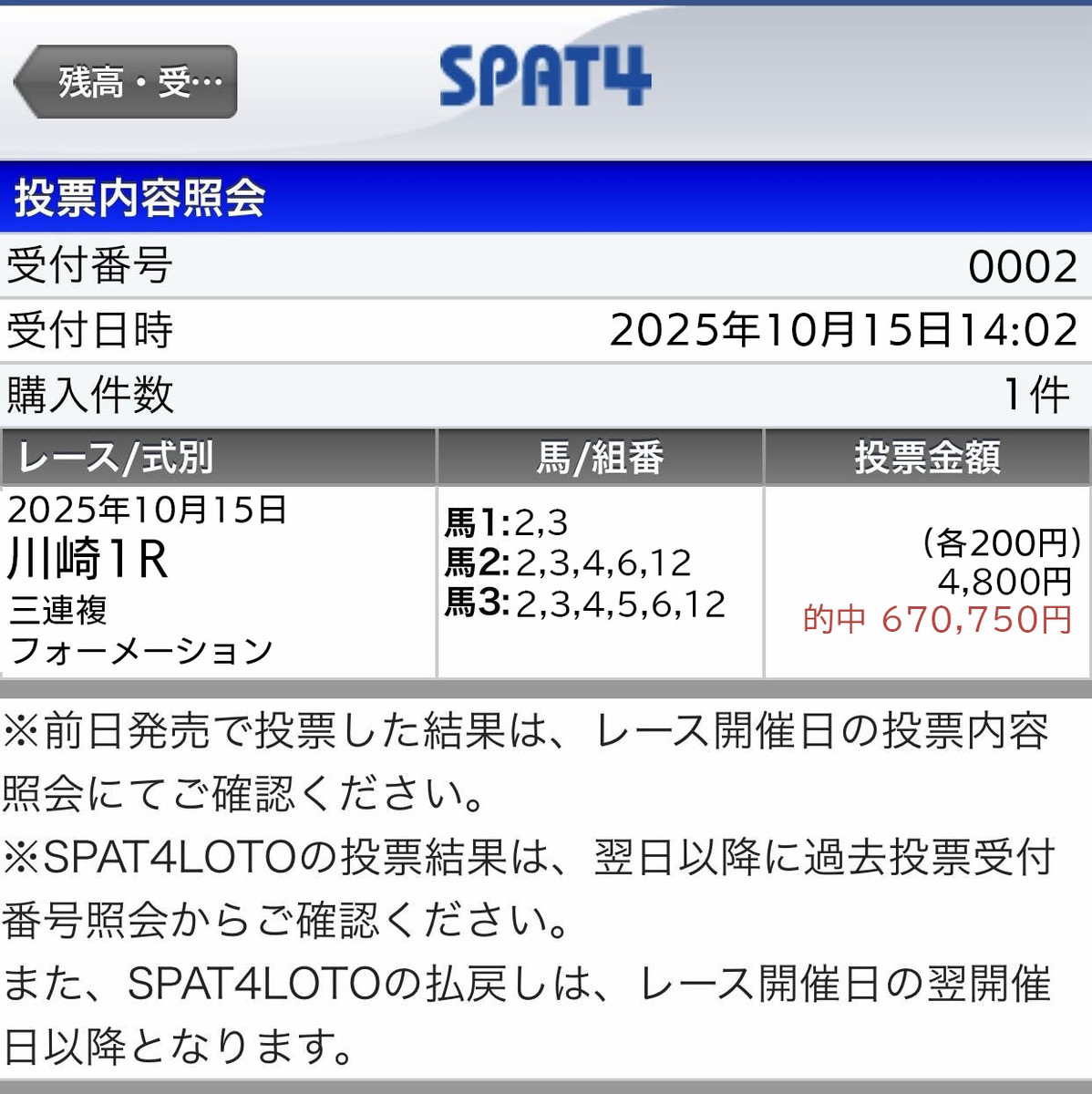 約1万円の馬券代が21万5520円に変わりました。