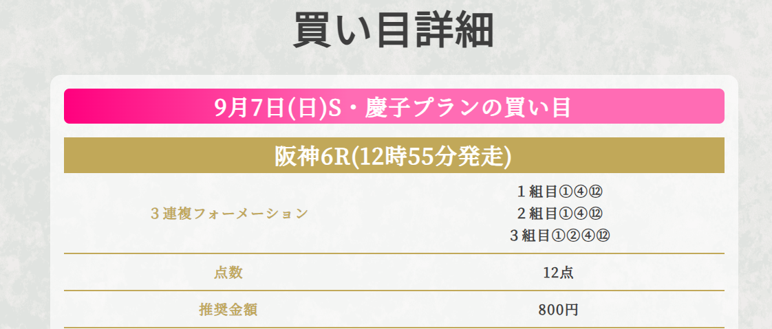 今週は的中実績を見てもかなりの好成績な慶子さんの予想に乗ることに。