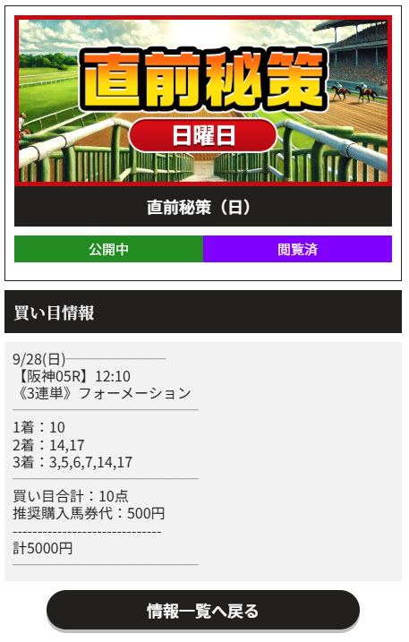 直前秘策情報はマジで当たるな! 直前情報だから当たるんだろうな! これで3戦3勝負けなしの的中街道まっしぐら! 今回も馬券代5千円で13万9300円もの的中。 2025年は有馬記念までここを使い続けようと思います。