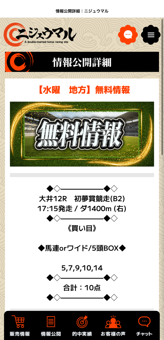 地方競馬が生活の生計を立てています(笑) その理由がニジュウマルというサイトに出会い使用スタートしたからです。 つい先日も金沢の重賞、北国王冠で最下位人気を的中させて1690.4倍の特大10万馬券的中しました。 1万円以下の馬券代で50万7120円払戻し、派遣の仕事で月に20万ちょいしか稼げないから競馬の的中がないと生活できない、今回も給料日前に助かりました。