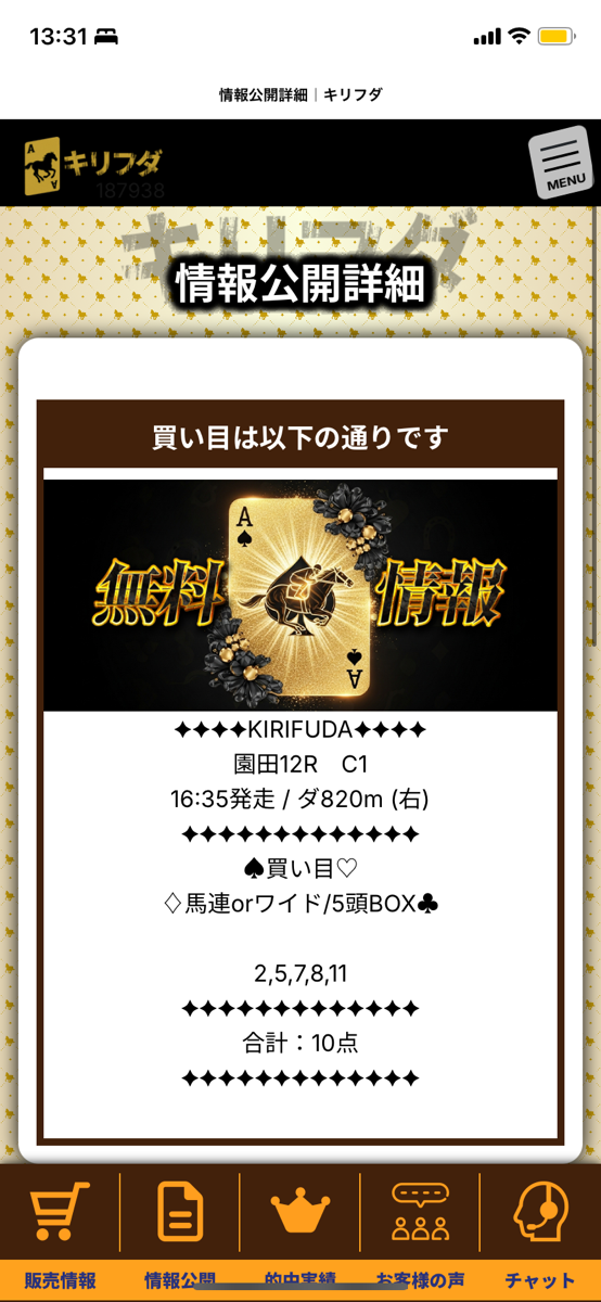 管理人さんに紹介されたキリフダの無料情報12月10日、4万3000円当たったよ!